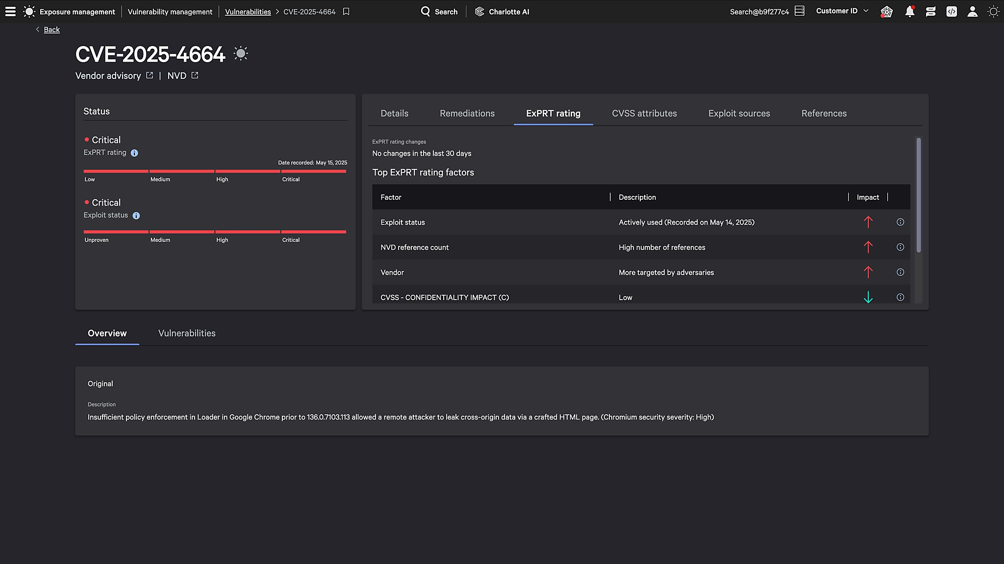 As CrowdStrike leads the next era of cybersecurity with the agentic security platform, Falcon Exposure Management will deliver real-time, risk-based prioritization powered by the same intelligence behind CrowdStrike® Charlotte AI™ and agentic SOC automation.
